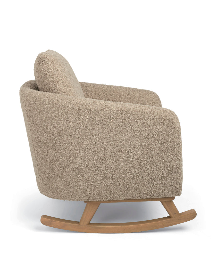 Fully upholstered boucle nursing chair in irresistibly soft, textured fabric to complement modern nurseries